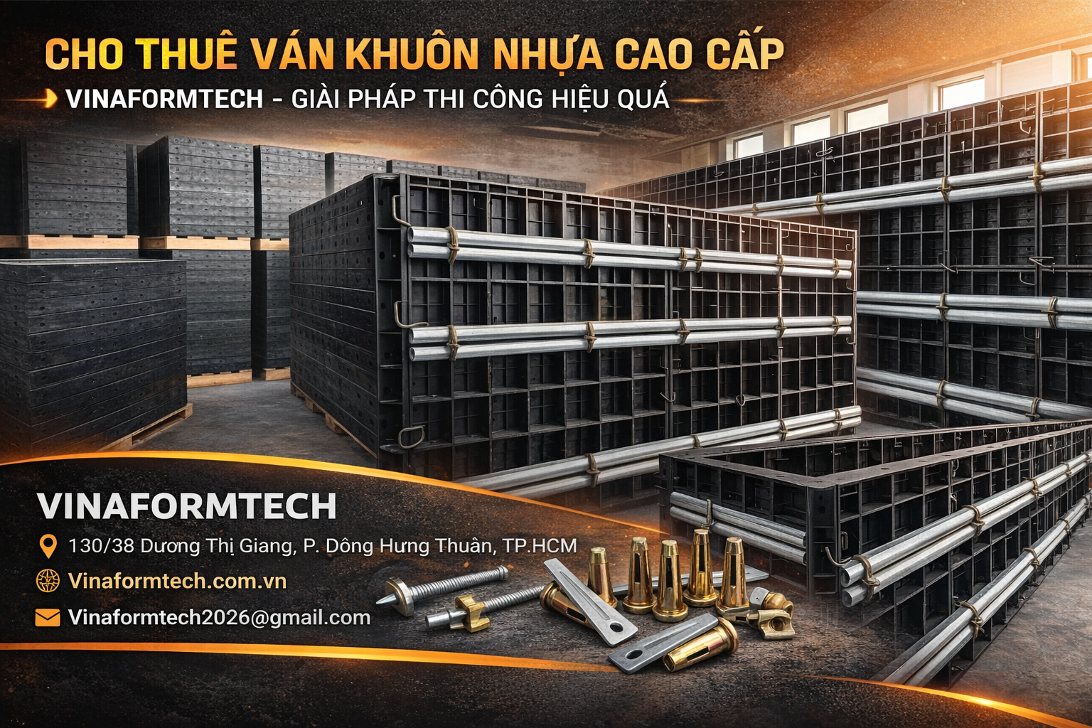 Vinaformtech cung cấp dịch vụ cho thuê ván khuôn nhựa và phụ kiện đồng bộ, giúp các nhà thầu giảm chi phí đầu tư ban đầu, linh hoạt thi công và nâng cao hiệu quả công trình.